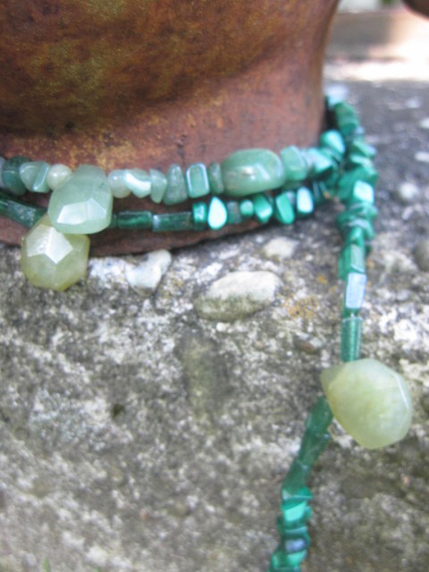JADE AVENTURINE AND MALACHITE LARIAT