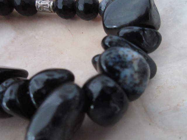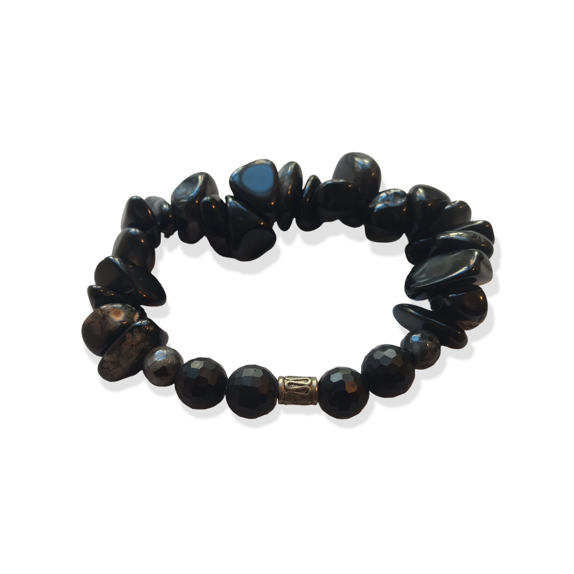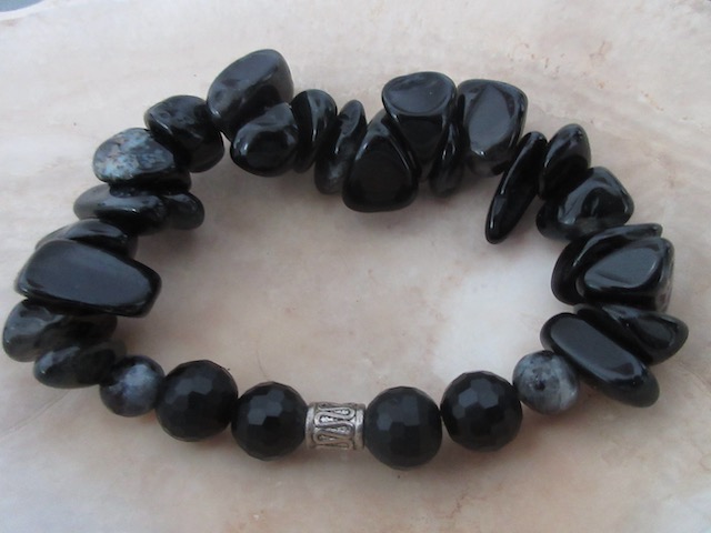 Obsidian, Faceted Onyx, black labradorite Stretch Bracelet. one size fits all.